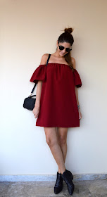 Today I'm wearing them with my favorite off-the-shoulders dress.